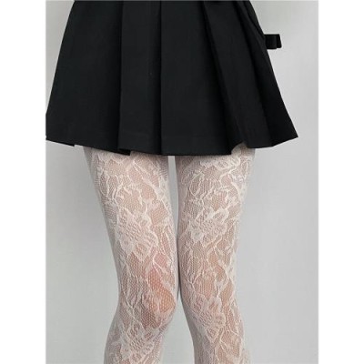 黑色花朵藤蔓丝袜女薄款网格镂空小众连裤渔网袜暗黑性感蕾丝袜子