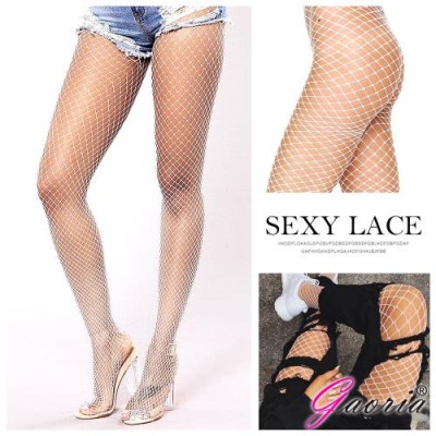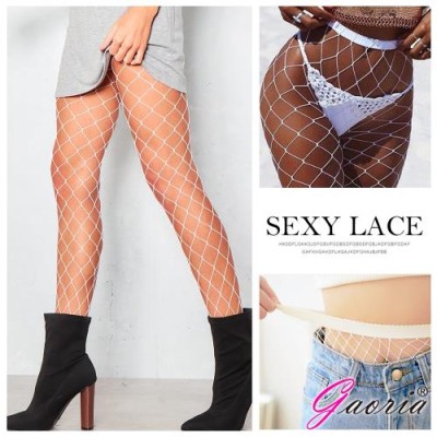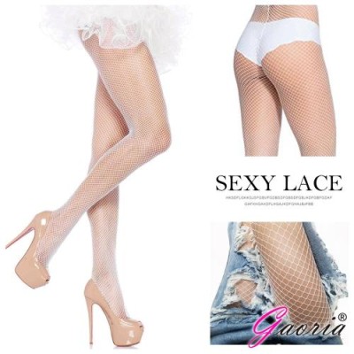 Gaoria 網眼襪 鏤空連褲襪 牛仔褲打底襪 漁網襪 白 大網